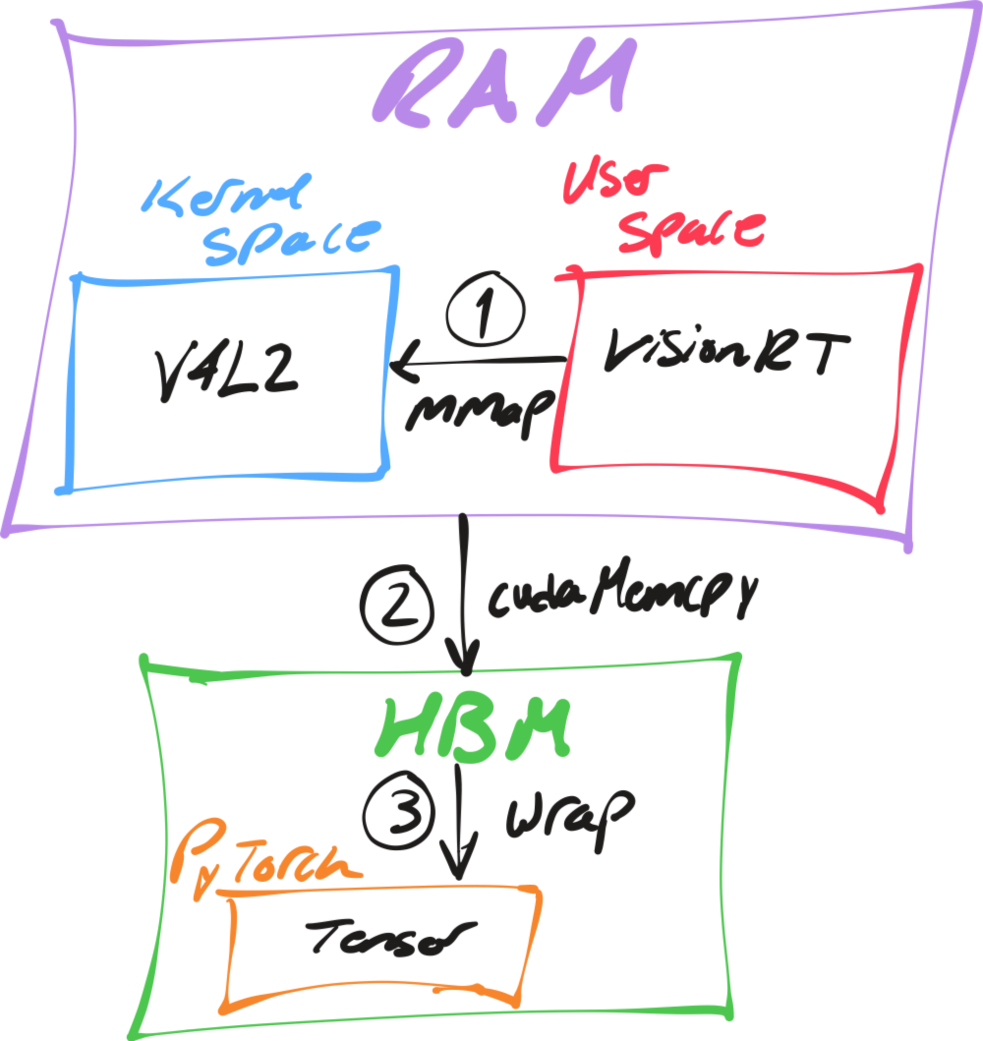 To establish a theoretical minimum for capture, I'll trace the data flow from camera to GPU-ready tensor.