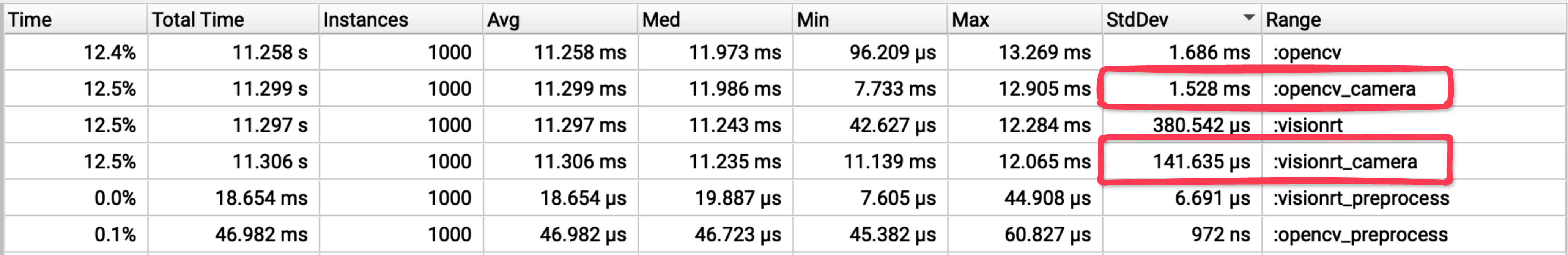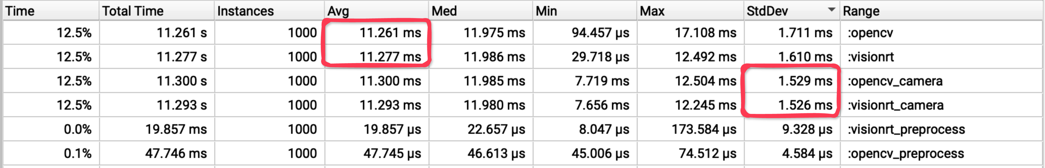 | VisionRT | 11.3 ms | 48.2% | 0.2 ms | 98.1% | 137 us | 99.9% |